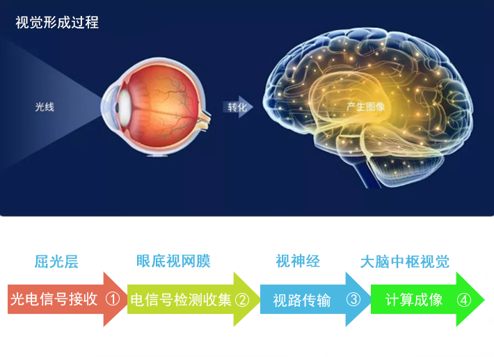 基于人类眼睛看到物体90%是基于电信号频率调节屈光层、帮助视网膜采集成像信号、通过视路传递信号频率、促进大脑视觉皮层分析成像的现实理论,